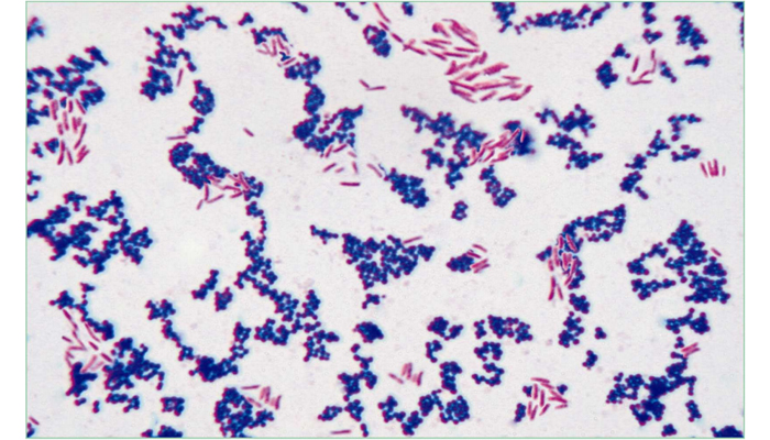 Gram-positive organisms appear purple.