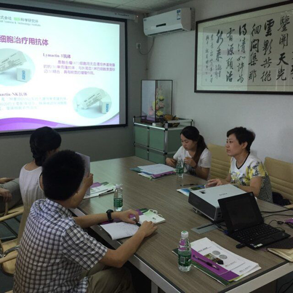 2015年8月3日成都軍區(qū)總醫(yī)院細胞治療室專家與技術人員蒞臨珠海貝索細胞科學技術有限公司進行考察與交流。珠海貝索細胞科學技術有限公司孔偉圣總經(jīng)理對此行的老師表示熱烈歡迎,向前來交流的老師介紹了貝索企業(yè)未來發(fā)展戰(zhàn)略以及細胞免疫治療團隊專家概況。蒞臨的部分老師同時進行了為期6天的技術培訓與交流,重點了解我司的NK細胞培養(yǎng)技術,深入交流了目前國內(nèi)細胞免疫治療狀況,分享了株式會社細胞科學研究所相關細胞培養(yǎng)技術以及日本國內(nèi)細胞免疫治療進展等內(nèi)容。老師們在培訓期間還參觀了我司生產(chǎn)車間和研發(fā)實驗室,對我司的相關產(chǎn)品的質(zhì)量控制措施給予了高度評價。