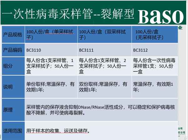 BC3111 一次性病毒采樣管(裂解型) 100人份(雙采樣拭子) 12月