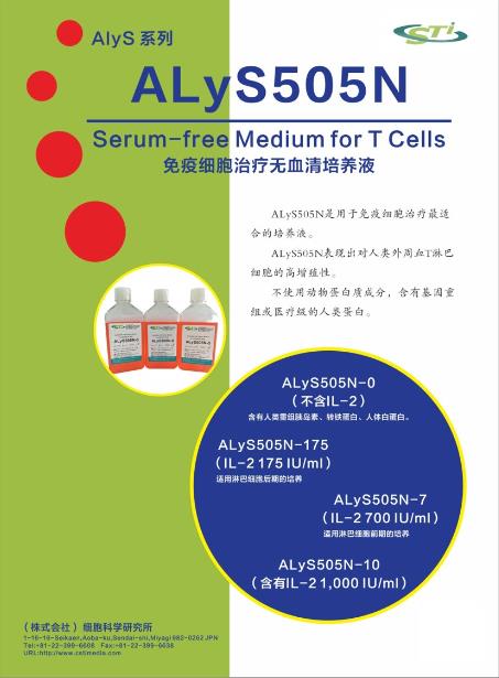 【產(chǎn)品概述】ALyS505N-0 是專為細胞免疫治療研究而開發(fā), 不含有任何動物蛋白質(zhì)成分,含有重組或醫(yī)療級人類蛋白質(zhì)的無血清細胞培養(yǎng)基。對人類外周血T 淋巴細胞具有高增殖性,適用于CIK、DC、LAK、CTL 等T 細胞的擴增與活化,是細胞免疫治療用最佳培養(yǎng)基。