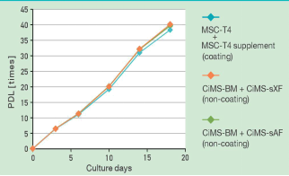 【產(chǎn)品概述】 CiMS系列培養(yǎng)液是專為人類間充質(zhì)干細(xì)胞體外無分化增殖培養(yǎng)而研發(fā)的高端產(chǎn)品,包括CiMS-BM基礎(chǔ)培養(yǎng)液和CiMS-sXF培養(yǎng)液添加劑。二者不添加牛血清等存在潛在污染風(fēng)險(xiǎn)的物質(zhì),不含異質(zhì)源性物質(zhì),使用醫(yī)療級蛋白使得使用更安全。另外,培養(yǎng)容器無需黏連蛋白包被,亦可使干細(xì)胞貼壁并迅速增殖。無需添加額外的血清及細(xì)胞因子,減少了外源因素導(dǎo)致的不穩(wěn)定性,保證臨床中至少5代以內(nèi)保持間充質(zhì)干細(xì)胞的特性不分化。并且,經(jīng)實(shí)驗(yàn)證明擴(kuò)增的間充質(zhì)干細(xì)胞有向骨、脂肪及軟骨分化的能力。